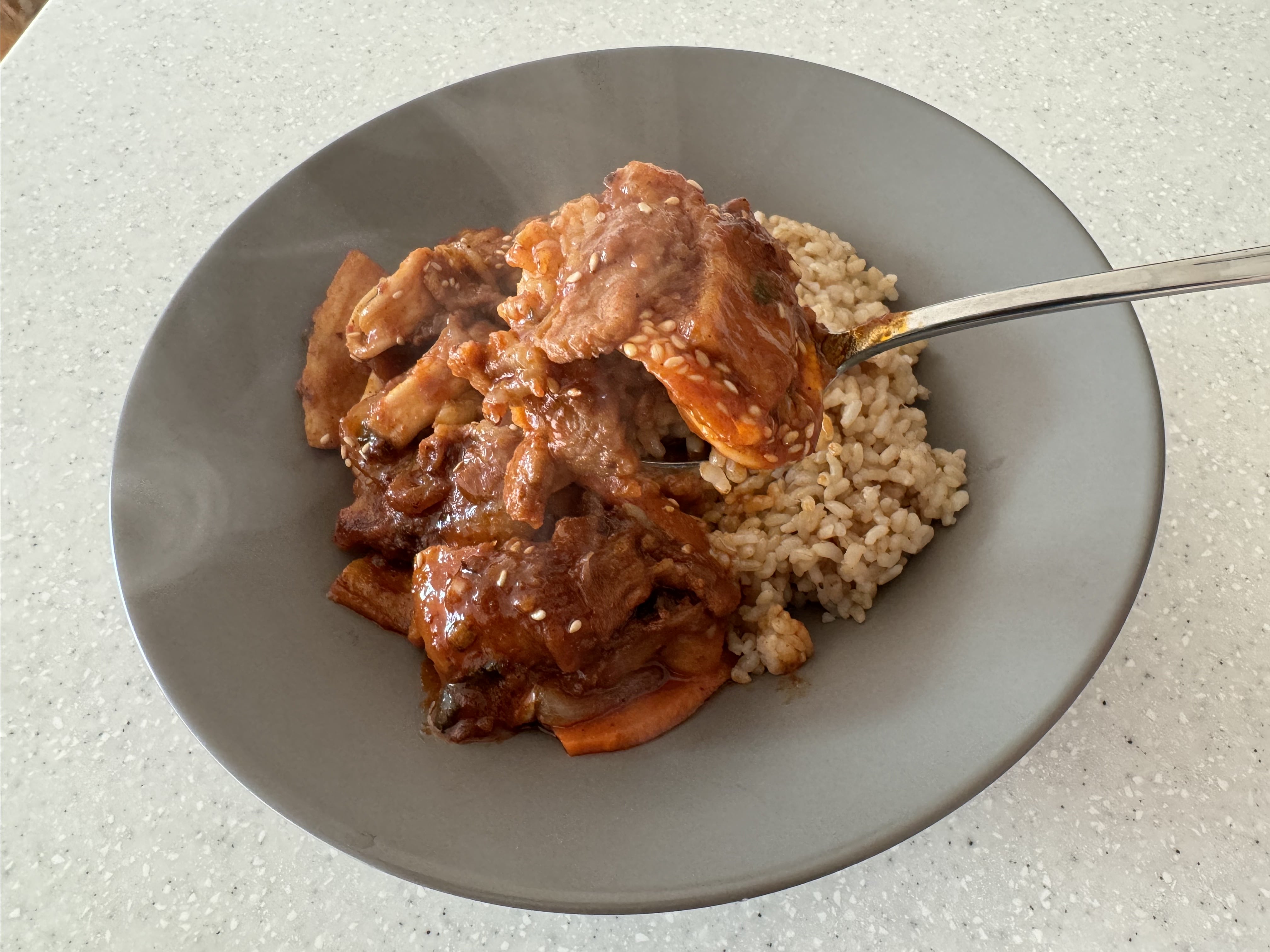 오삼불고기를 밥에 곁들어 오삼불고기 덮밥으로 식사를 즐겼는데요. 쌈채소에 밥과 함께 싸드셔도 맛있고 단일메뉴로 저처럼 밥에 올려 드셔도 정말 맛있어요. 삼겹살의 고소함과 담백하고 식감 좋은 오징어가 양념이랑 너무나 잘 어우러졌어요. 제가 해주는 음식 중 남편이 가장 좋아하는 메뉴 중 하나인데요. 특히 이 레시피로 양념해줬을 때 감탄에 감탄을 연발하며 잘 먹어요. 저녁 메뉴 걱정중이시라면 고민없이 바로 이 오삼불고기 만들어보세요. 모든 식구들이 밥 한 공기는 거뜬히 먹을 거에요. 맛과 영양 모두 좋은 음식으로 식사 맛있게 하세요! :)